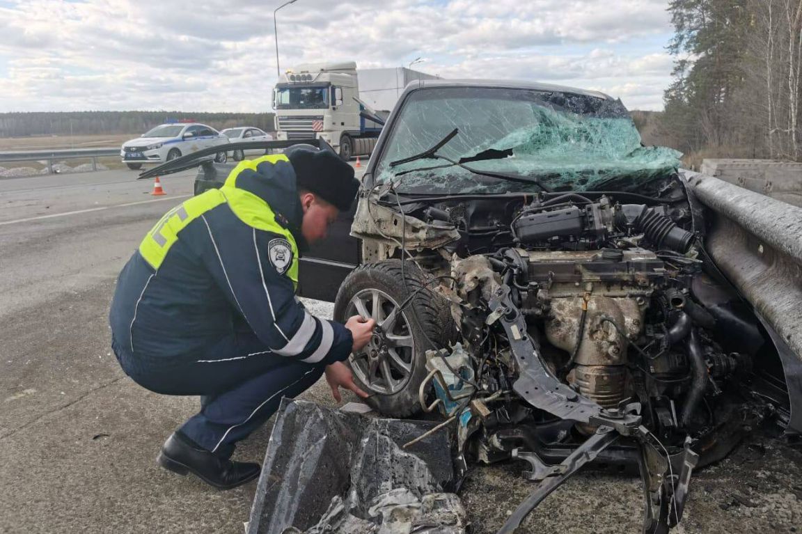 По данным УГИБДД по Свердловской области, водитель легкового автомобиля получил травмы, его госпитализировали с диагнозом перелом ноги и сотрясение головного мозга. Обстоятельства ДТП выясняются.