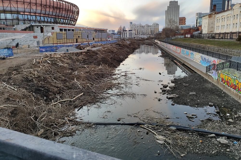 Мэрия Екатеринбурга объяснила, почему на набережной у ледовой арены спилили деревья