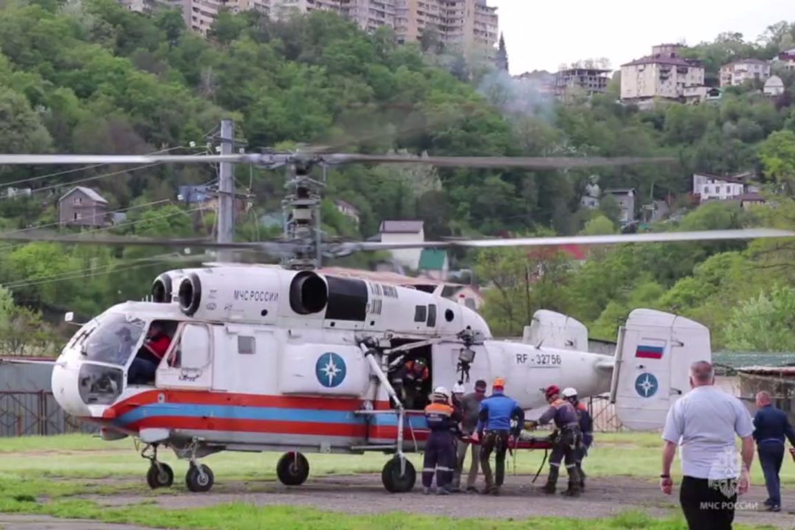Травмированных уральцев обнаружили на склоне хребта Ачишхо. Сотрудники Южного регионального поисково-спасательного отряда МЧС России с помощью лебедки подняли их на борт вертолета Ка-32, а затем передали врачам скорой помощи.