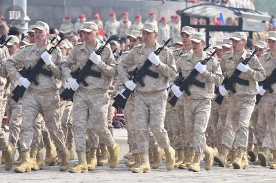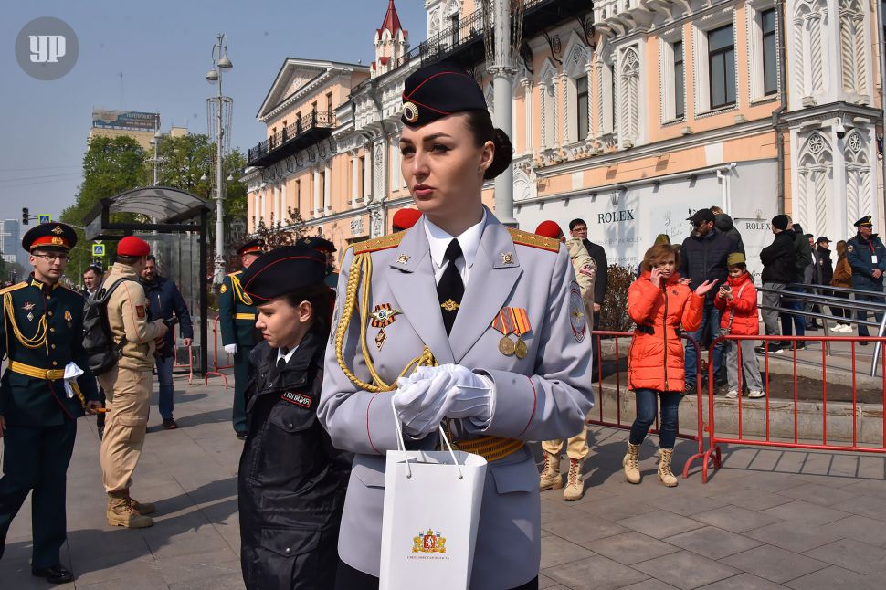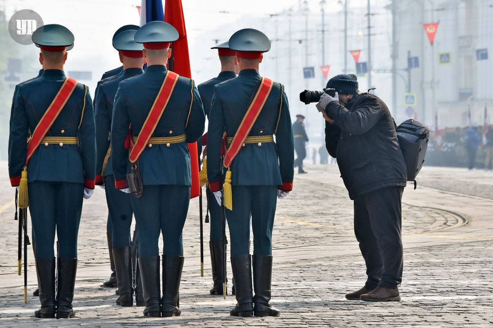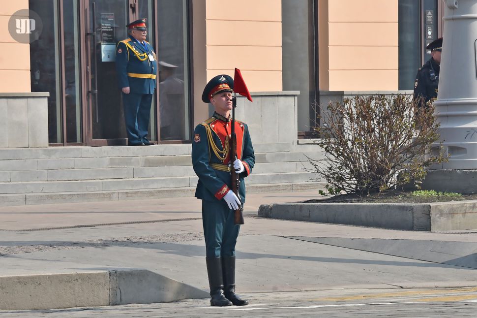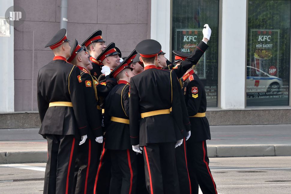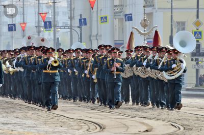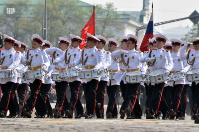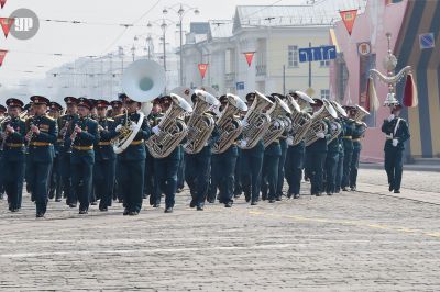 Парад, посвященный Дню Победы, завершили своим выступлением военнослужащие роты почетного караула и музыканты военного оркестра. В их исполнении прозвучали лучшие произведения русских и советских композиторов.