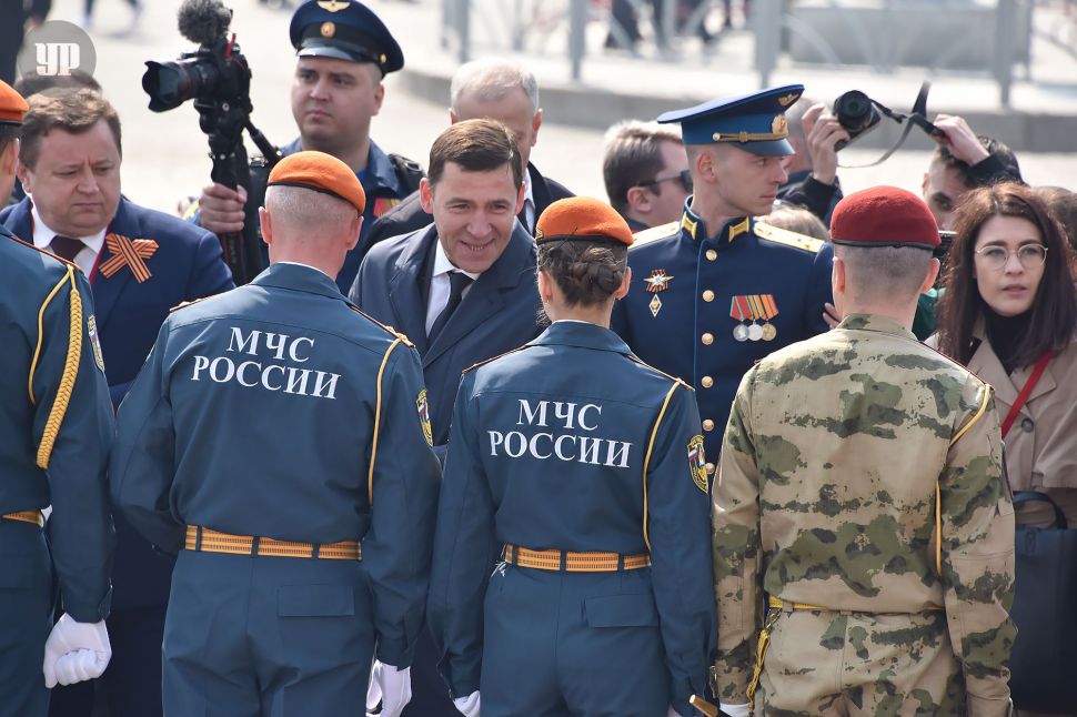 Губернатор Свердловской области Евгений Куйвашев обратился к гостям и участникам парада с приветственным словом. в котором подчеркнул историческое значение Великой Победы, огромный вклад уральцев в разгром немецко-фашистских захватчиков.