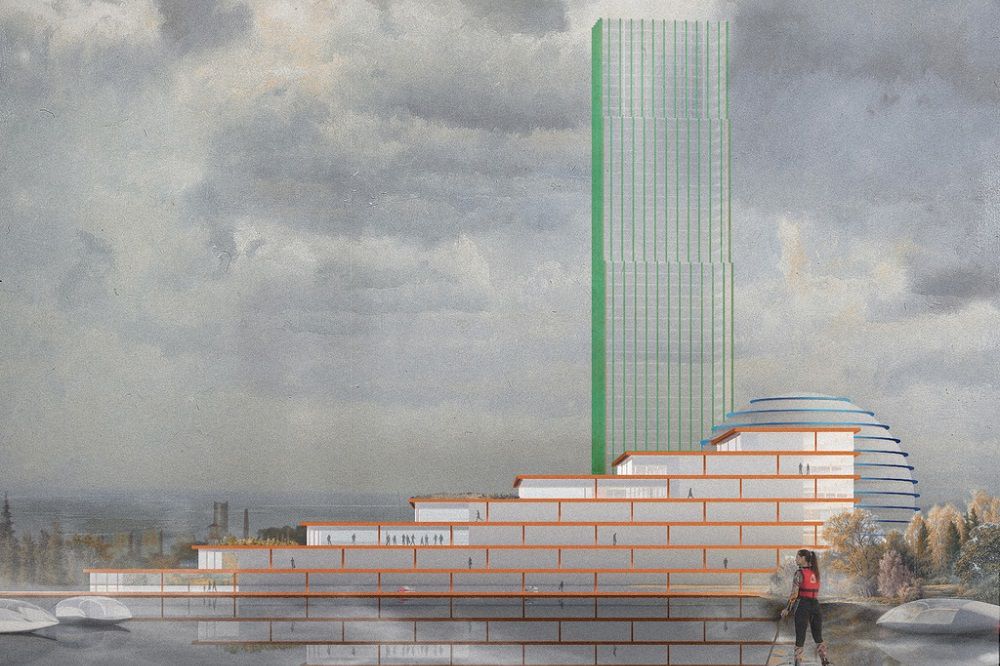 В Екатеринбурге архитекторы из бюро «Гордеев — Демидов» представили проект комплекса зданий на берегу Верх-Исетского пруда. В него включили 56-этажный небоскреб.