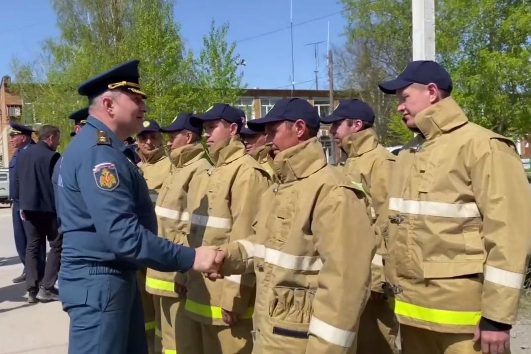 Спасатели принимали участие в тушении масштабного пожара в поселке. Евгений Куйвашев и Александр Куренков поблагодарили огнеборцев за оперативную и слаженную работу. Действия сотрудников МЧС позволили остановить огонь и не допустить более серьезного ущерба поселку.