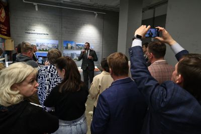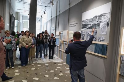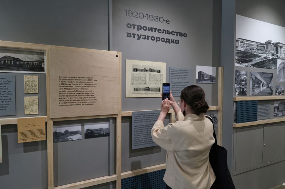 Первую экскурсию по небольшому, стильно оформленному пространству провел заведующий научно-информационным центром Музея истории Екатеринбурга Евгений Бурденков. Он рассказал, как появилось название «Втузгородок» — трансформировалось из «городка втузов»: в 30-е годы прошлого века УПИ был разделен на отраслевые заведения (втузы), учебные корпуса и общежития которых находились на территории микрорайона.