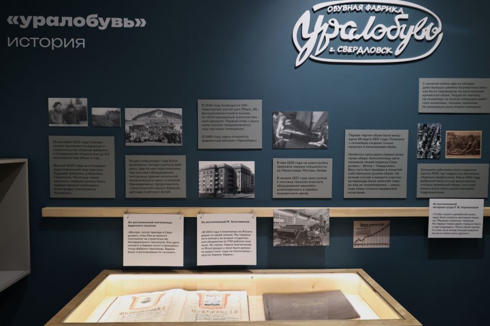 Представлена в экспозиции музея и история фабрики «Уралобувь». Архивы предприятия стали основой музейной экспозиции. А ее территория — частью современной застройки, которую ведет девелоперской компании «Первостроитель», реализовавшая совместно с Музеем истории Екатеринбурга идею создания культурного пространства на первом этаже одного из жилых комплексов.