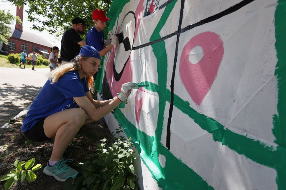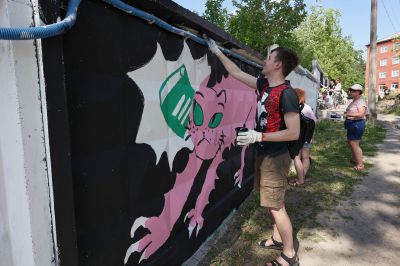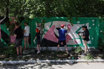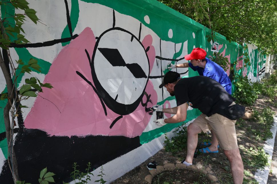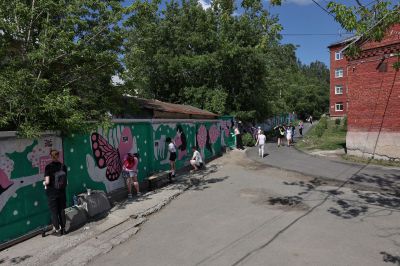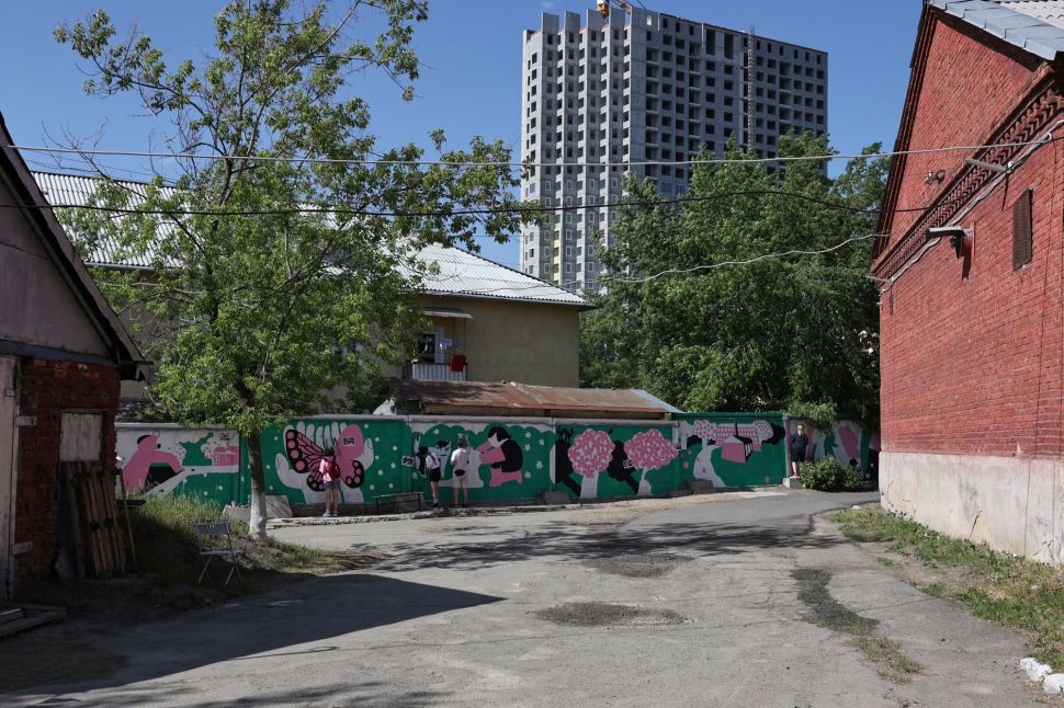В мае участниками районной школы паблик-арта от фестиваля «ЧО» стали ученики школы-интерната №11 Екатеринбурга. Больше месяца под руководством художницы Наташи Пастуховой они изучали уличное искусство, пробовали себя в граффити и собирали истории о месте, где они живут и учатся. Результатом мастерской стал мурал длиной 128 метров, расположенный на Эльмаше недалеко от школы.