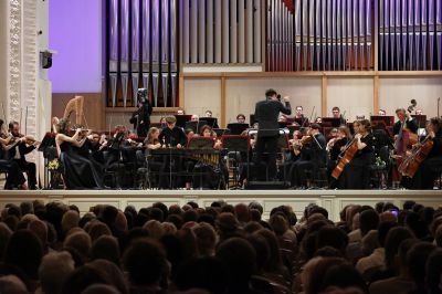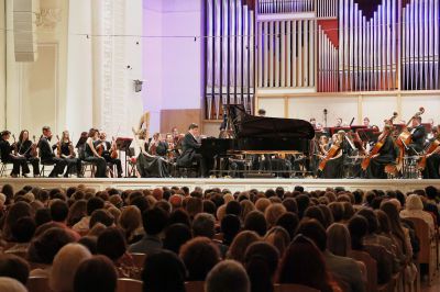В первый день фестиваля Денис Мацуев и талантливые юные музыканты представили произведения Сергея Рахманинова, 150-летие которого широко отмечается в этом году.