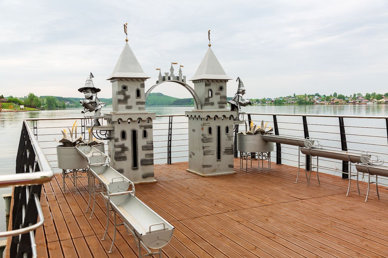 Для рыбаков и отдыхающих установили плавучие беседки и пирсы для рыбаков. Украшением набережной стали композиции из металлических пластин, ассоциирующиеся с цехами машиностроительного завода.