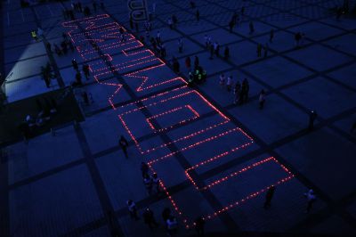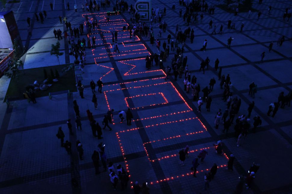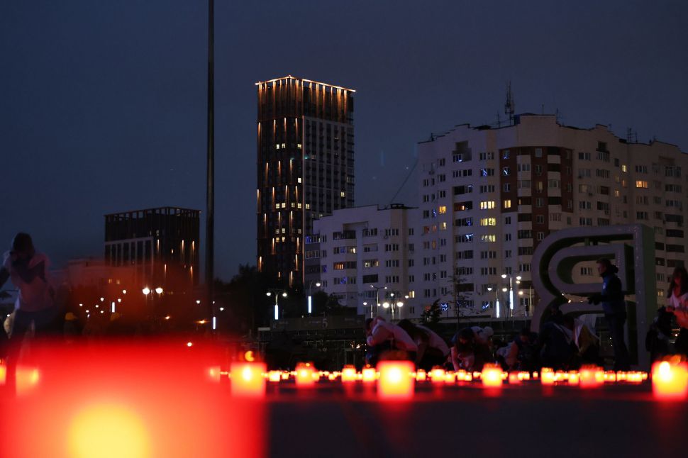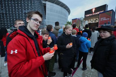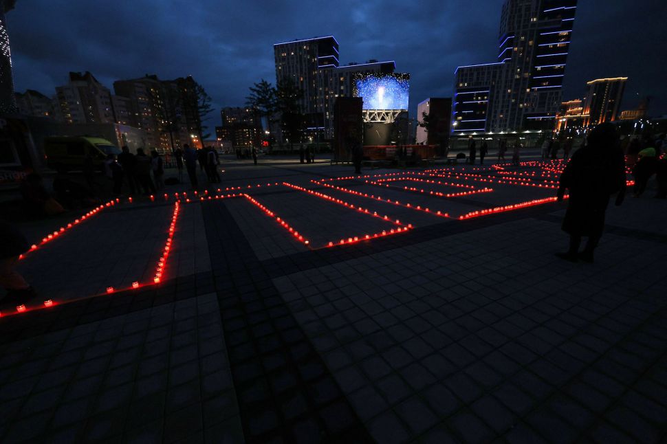 Мероприятие прошло на стадионе «Екатеринбург Арена» вечером 21 июня — в преддверии Дня памяти и скорби. Уральцы выстроились в слово «Помним» с зажженными свечами в руках.