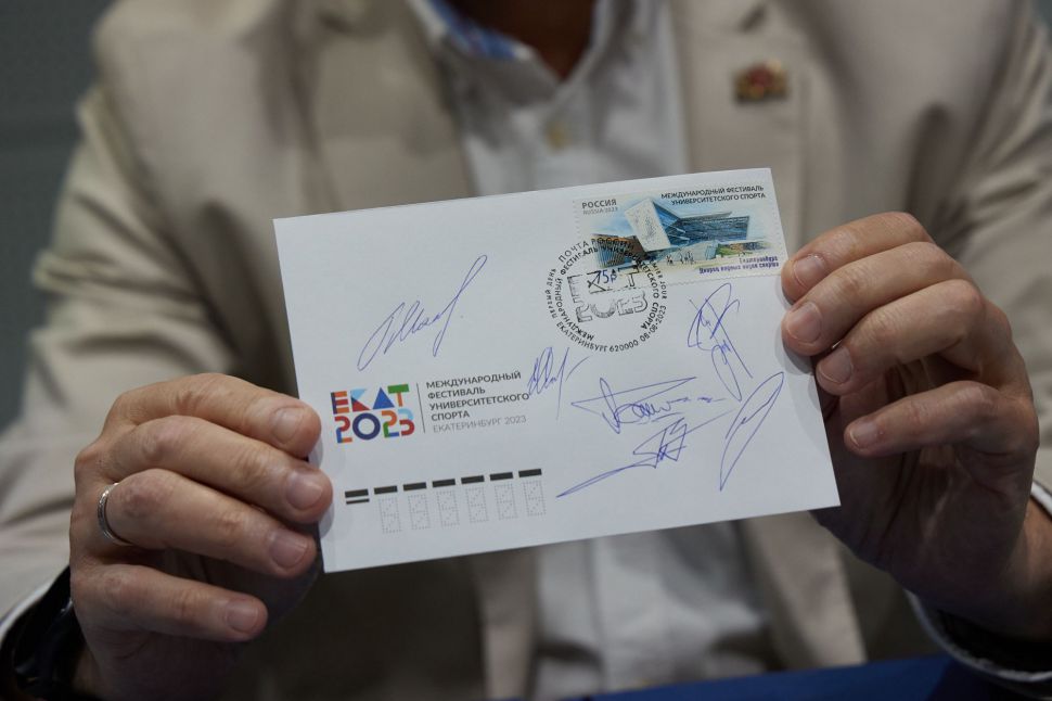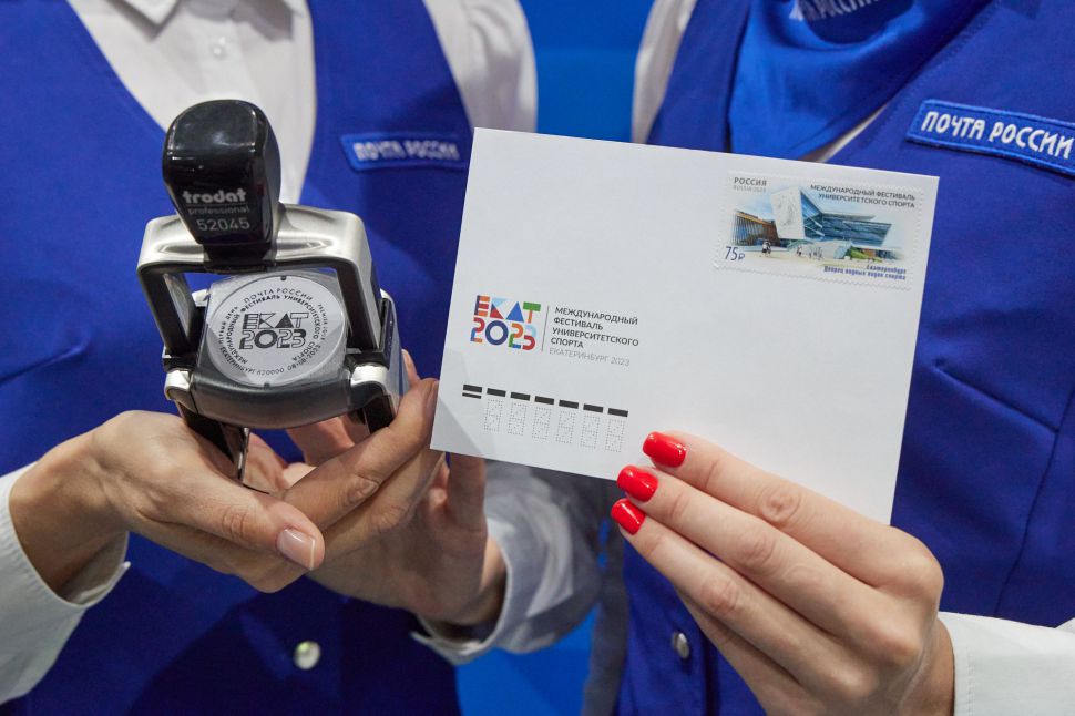 Дирекция международного фестиваля университетского спорта и «Почта России» торжественно ввели в почтовое обращение марку, посвященную приближающимся соревнованиям. Церемония гашения прошла во Дворце водных видов спорта в Екатеринбурге. Именно этот объект, построенный специально к проведению фестиваля, изображен на марке.
