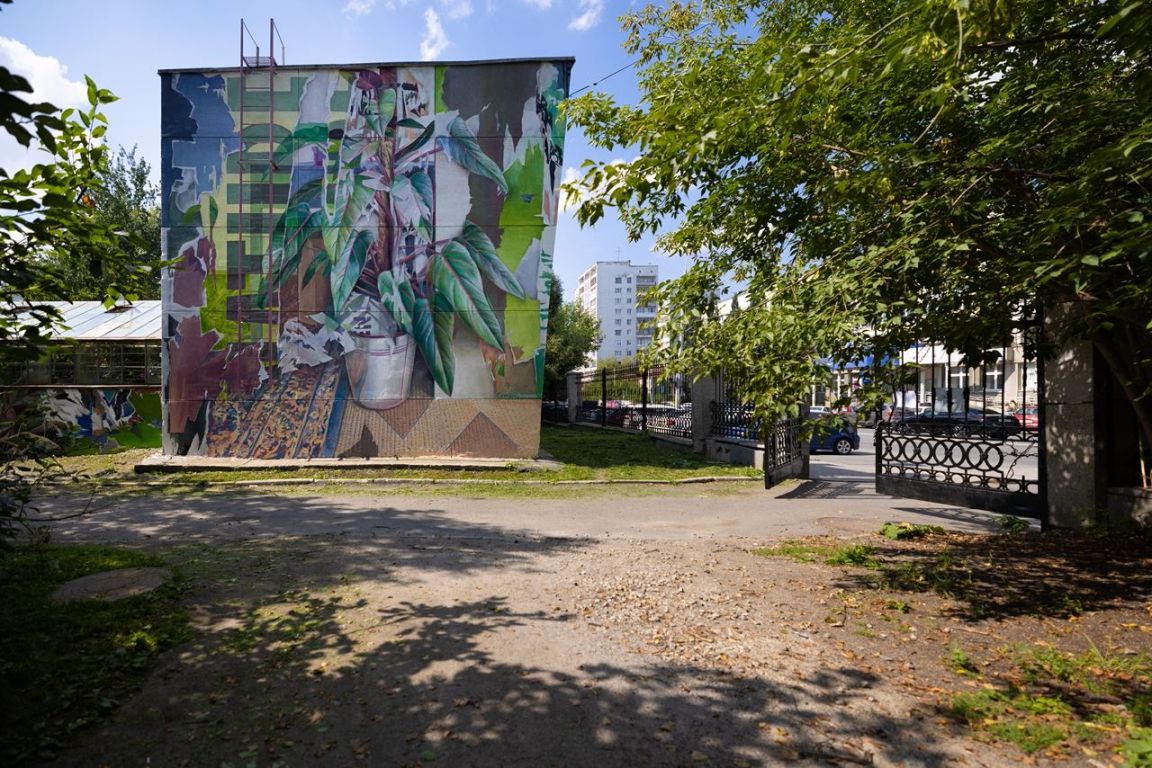 Новый мурал фестиваля Stenograffia в Екатеринбурге как нельзя лучше вписался в окружающее пространство. Художник Сергей Акрамов расписал стену Городского детского экологического центра в Харитоновском парке растениями.