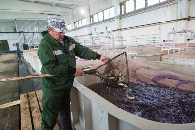 Рыбу специально вырастили на Зеленоборском рыборазводном заводе «Главрыбвод».