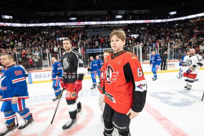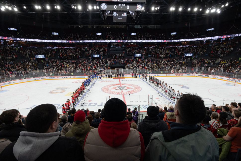 На лед вышли друзья и бывшие одноклубники Федора, юные хоккеисты родной для Малыхина школы «Спартаковец», ветераны клуба.