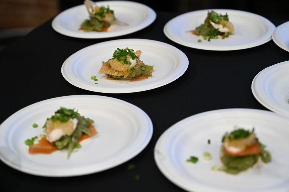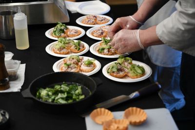 Прямо на сцене мастера приготовили закуски с региональным вкусом. Первый шеф-повар Сергей Мирошников сделал шаньги классические и сугутай из судака. А второй кулинар Аркадий Кузеванов – тарталетки с копченным лещом и домашние малосольные огурцы.