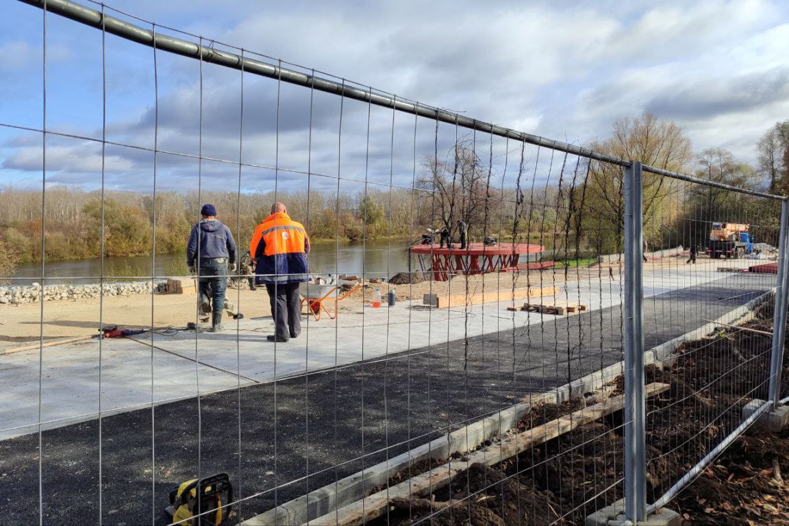 – Когда начали работать тут лес стоял, – рассказал «УР» прораб Денис Семочкин. – Сейчас монтируем смотровую площадку. Работы идут согласно графику и в установленный срок все закончим.