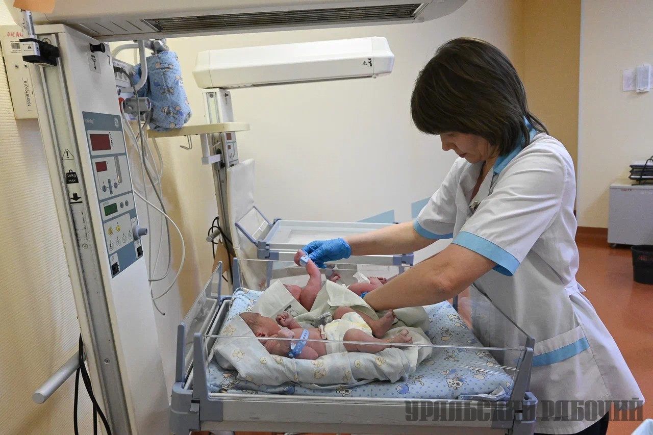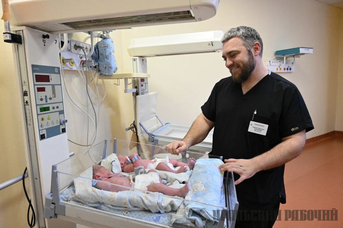 Двойное счастье под надежной опекой. Специалист перинатального центра заботится о новорожденных близнецах в первые часы их жизни