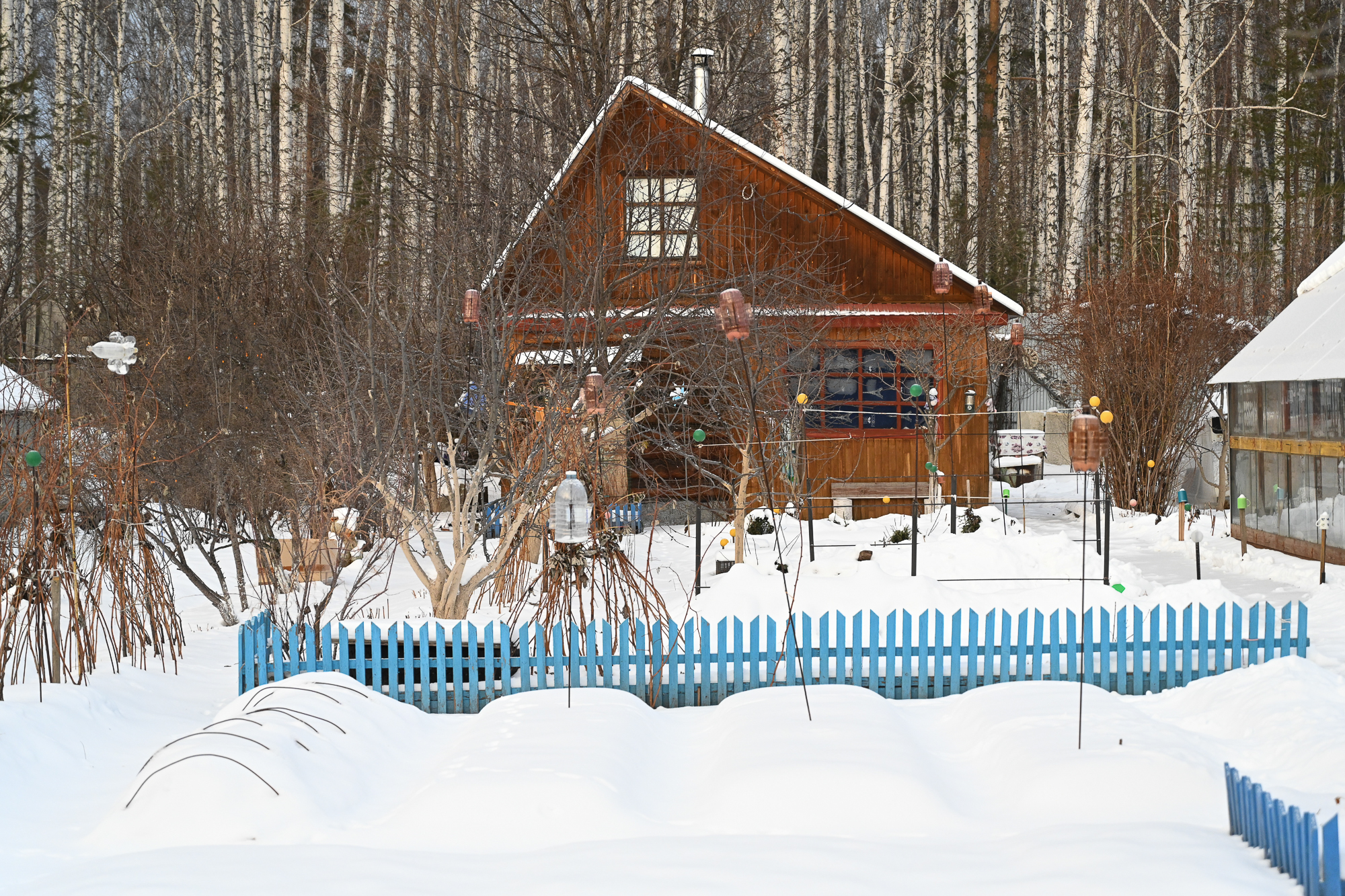 Участки, где теплится жизнь, заметны сразу. В основном, это капитальные дома за высоким забором. Но есть и заснеженные летние домишки с покосившимися ограждениями и темными окнами.