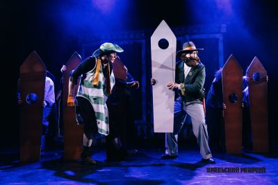 Команде Комарицких удалось подружить на сцене музыку, свет и декорации. За последние, кстати, отвечает Мария Красовская – частый партнер Михаила в создании спектаклей, и в целом партнер по жизни – они супруги. Шкаф тети Полли, родной сестры мамы главного героя, ловко превращается то в дом, то в тюрьму, то в пещеру и даже в кладбище! Постановщики, разыгрывая некоторые сцены, обращаются к театру теней, добавляя спектаклю разнообразия в средствах выразительности. Ловко жонглируют создатели и эмоциями: момент преступления выделяется музыкой и светом, подчеркивая трагизм сцены, но, с шустростью Тома Сойера, все меняется, и из трагедии нас перебрасывают в легкую комедию.